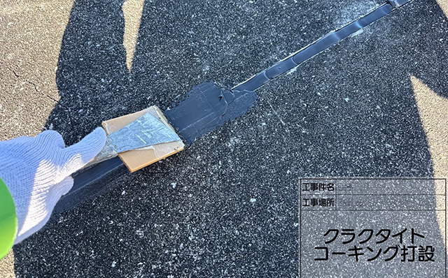 現地調査の際に2階屋上部分に著しいクラックと防水層の劣化が見られました。